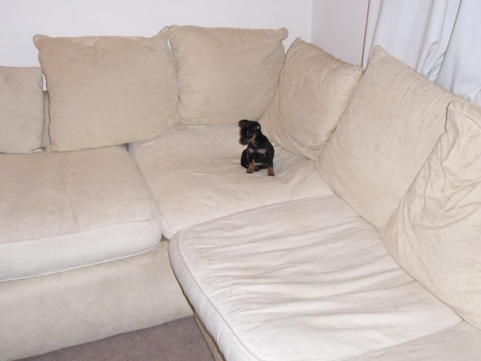And so it was, Benny’s father was a miniature pinscher! Known for their intelligence and pep, this would ensure the pup had the confidence to hold his own around our Frankie.